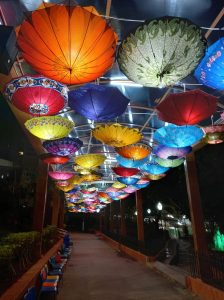 Neste ano de 2022, pela segunda vez, resolvemos abrir guarda-chuvas coloridos e iluminados para nos compelir na mística do caminho luminoso.