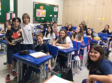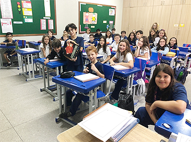 Dando continuidade ao projeto “Projeto Professor por um dia”, iniciado no 4º Ano EF, em 2017, os alunos da turma 53M chegaram com força total!! O primeiro assunto que despertou maior interesse… Virou aula de aluno! E que aula! Rafael Frade apresentou a formação da Lua a partir do choque, há milhões de anos, entre a Terra (ainda um planeta em formação) e Teia. A maior parte da massa de Teia foi incorporada à Terra e uma massa menor desprendeu-se formando a Lua. A aula foi muito significativa e estimulou os demais colegas a participarem do Projeto. Lucca Schaper será o próximo professor, com o tema “Diferença entre meteoroide, meteoro e meteorito”. E a turma 53M segue viajando pelos confins do conhecimento!